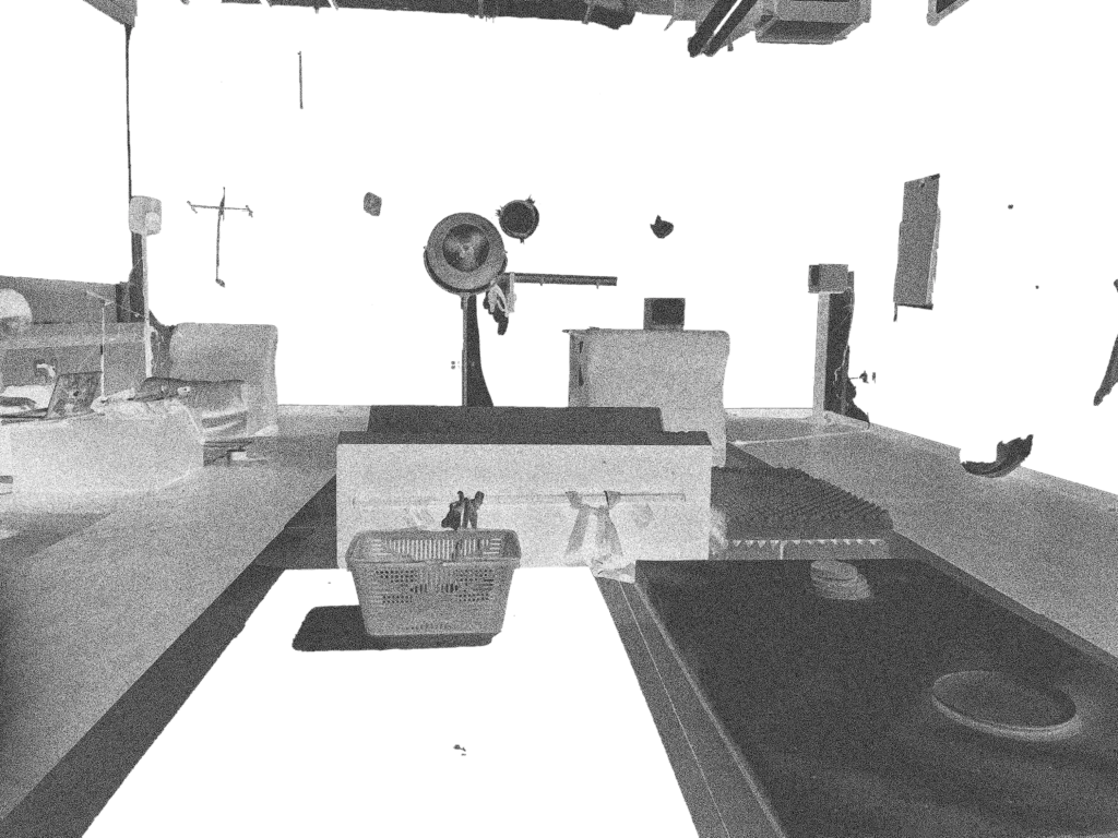 VK: I didn't mean to interrupt, but I felt that, too. Like there would just be moments where I can see too many things in this image because.. there's this cool moment where I was.. One of you guys was filming something and then all of a sudden you turned up in the image and I'm like, but you're not over there, you're over there! [Laughter] And I was just looking at the rectangle, I'm like, 'huh?' And then it was that mirror, so just everything had lined up so that you looked completely sharp in the image because the way the mirror was working you easily could be right behind. And so there are these moments where I was like okay, so people are actually moving [laughter] they're not where I think they are which, obviously, I mean I know it's a mirror, etc. But it's nice, and then sound does that as well and so on. Like they're really nice moments where when you start to pay attention and you start to pick up transpositions that are happening.