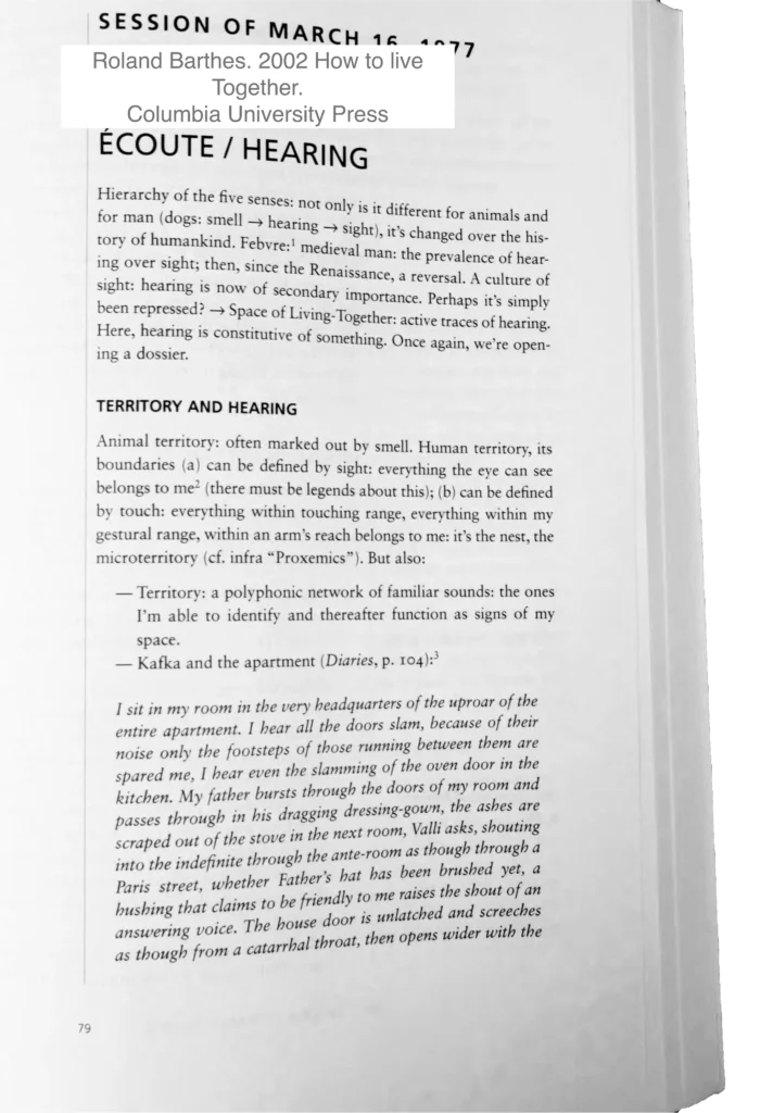 Barthes, R. (2014). How to live together: Novelistic simulations of some everyday spaces: Notes for a lecture course and seminar at the collège de France (1976-1977) (K. Briggs, Trans.). Columbia University Press.
